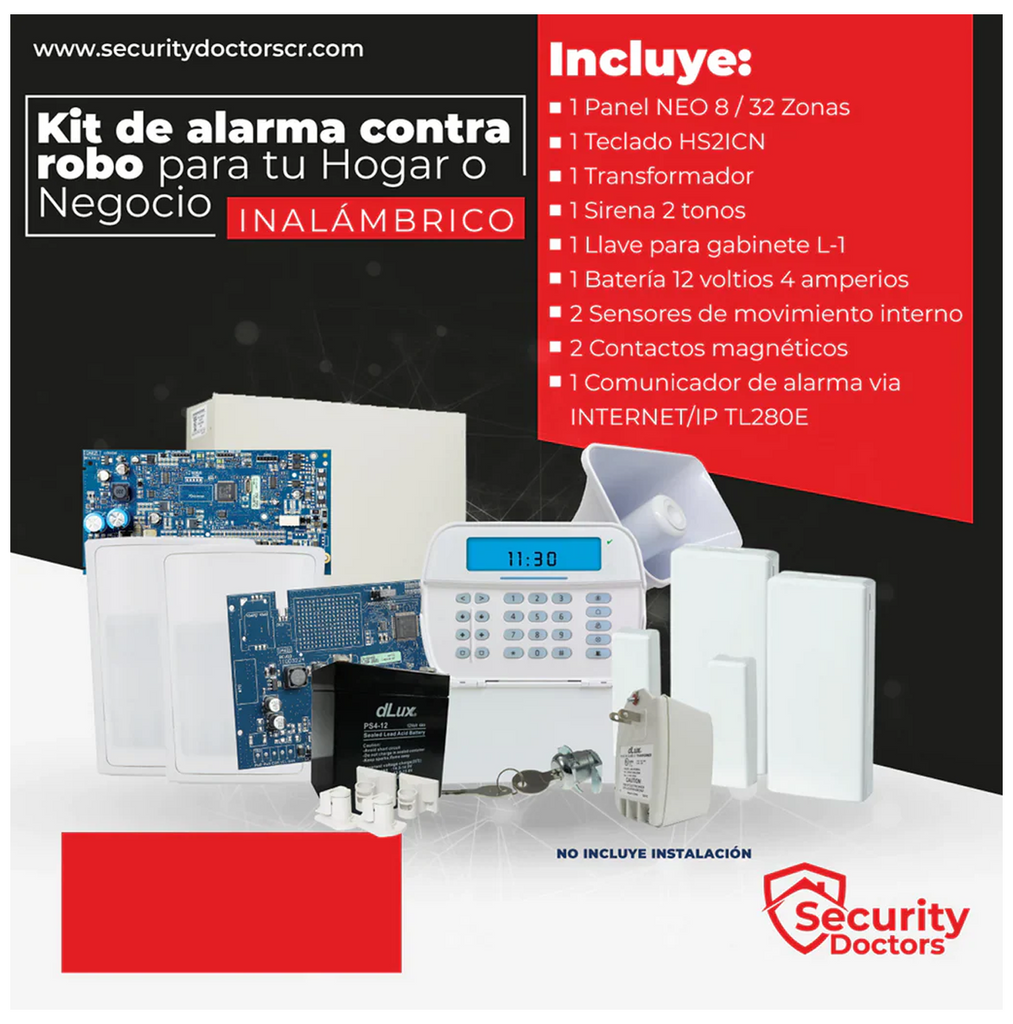 Kit de alarma contra robo para casas INALÁMBRICA KITDSC001 Modelo: KITDSC001 Marca: DSC Características: INCLUYE 1 Panel de Alarma PowerSeries NEO HS2032 8 / 32 Zonas 1 Teclado HS2ICN 1...
